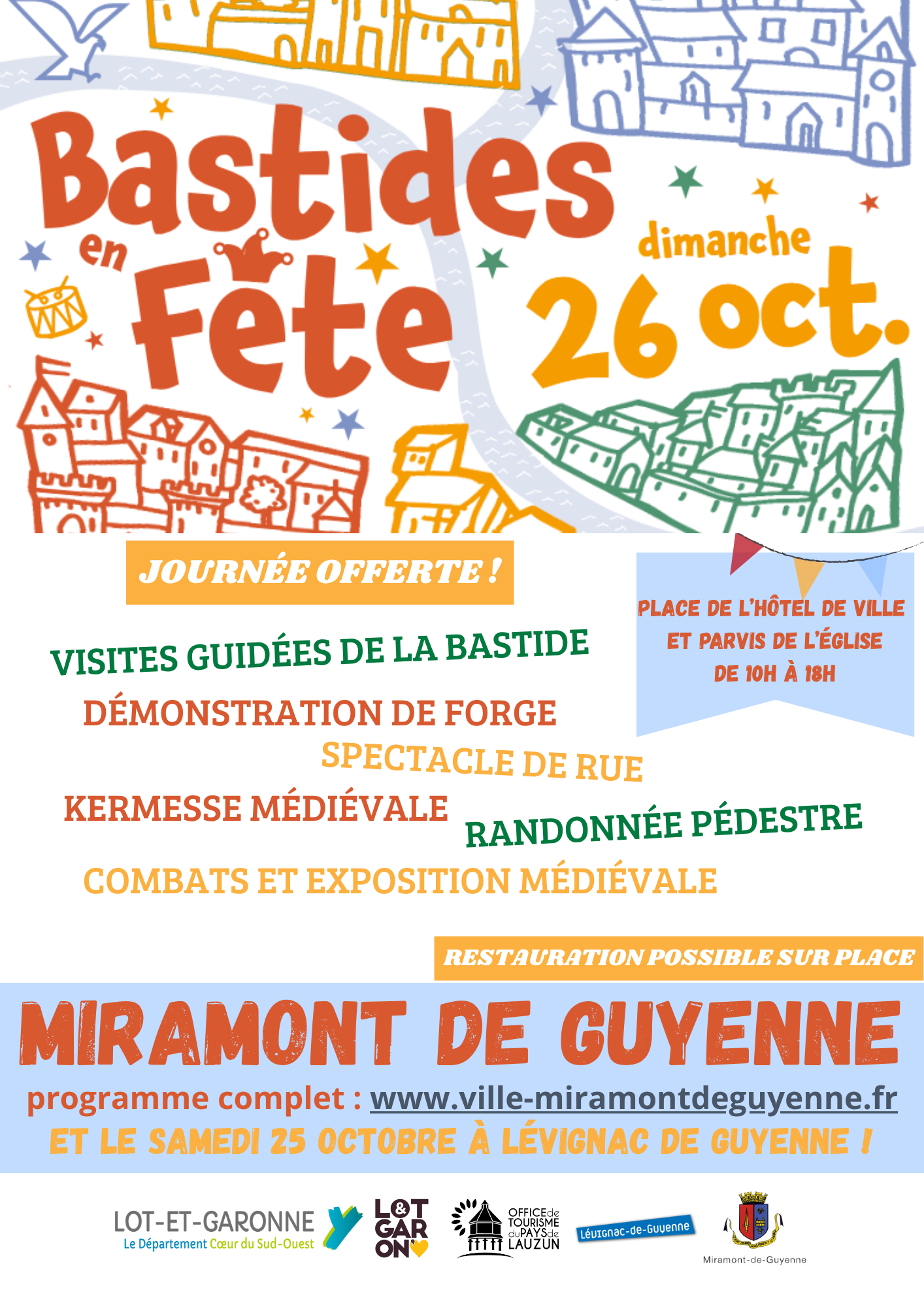 Bastides en Fête se déroule le week-end du 24 au 26 octobre, au cœur des vacances scolaires de la Toussaint. L’occasion parfaite pour s’évader en famille ou entre amis !