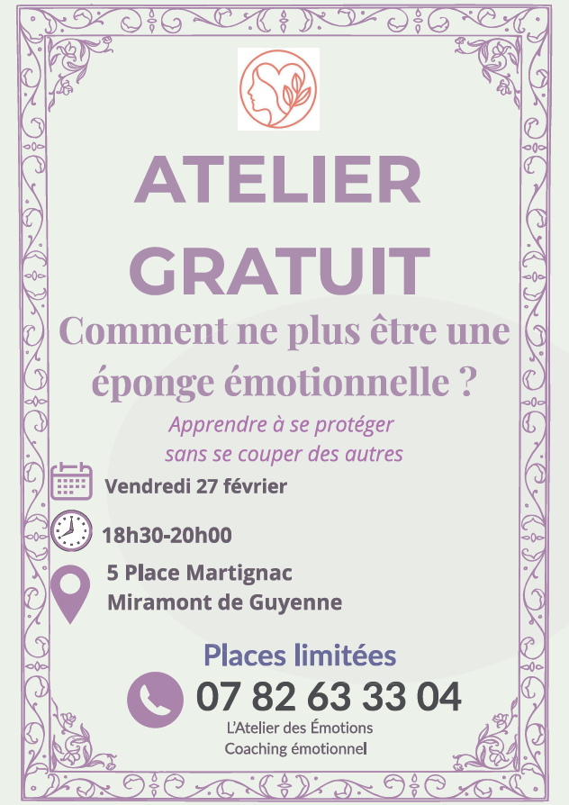 Nouvel atelier gratuit sur une autre thématique émotionnelle : comment ne plus être une éponge émotionnelle.